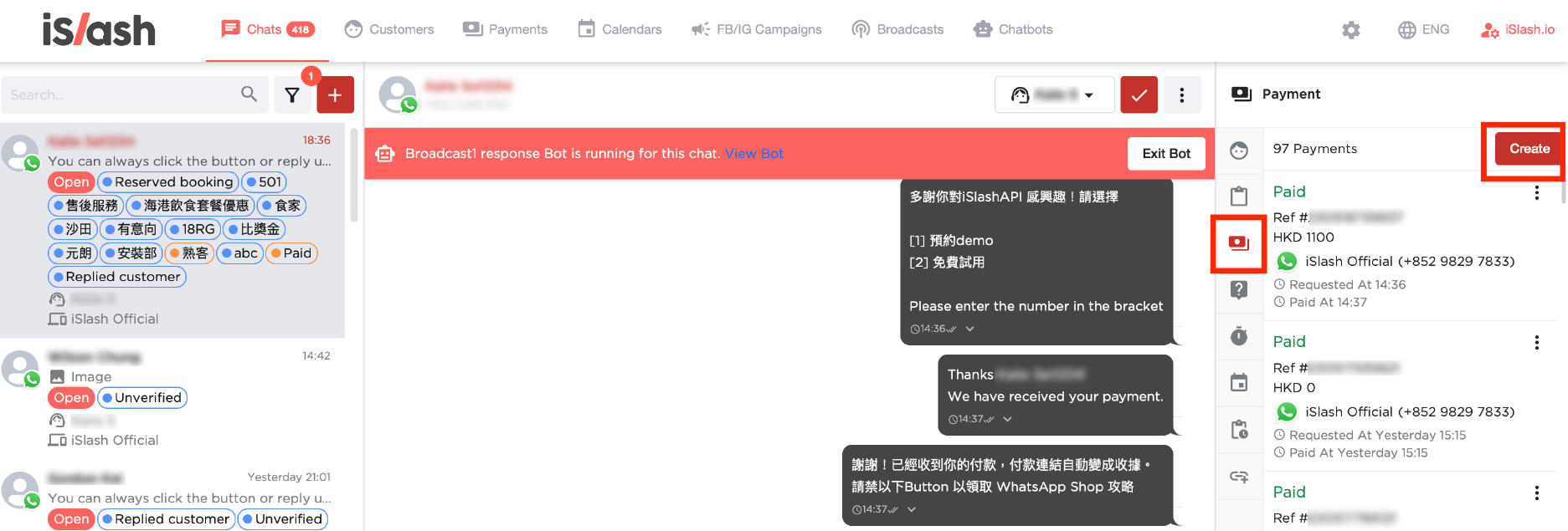 We now send product details and payment links directly in WhatsApp. No more switching platforms. Customers can complete their purchases without ever leaving the chat. [Chat, Order, Purchase, —— all by iSlash](https://islash.io/user-guide/in-app-payments).